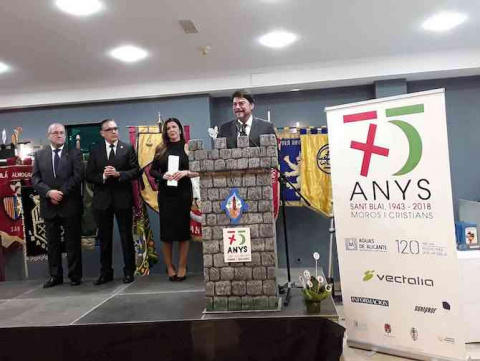 La velada comenzó con el relevo de filaes -moras y cristianas- que ostentaron los cargos de capitanes y alferez en este año. Le siguió la entrega de detalles, alusivos a las Bodas de Platino, al diseñador del logo del 75 Aniversario -Lluís Amat-, a los representantes de las distintas fiestas -Undef, Asociación de Belenistas, Fiestas Tradicionales, FAFBA, Junta Mayor de Semana Santa, Hogueras y FAMYC-, y a los antiguos presidentes de la Asociación de Moros y Cristianos de San Blas.