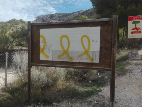 Coalición de Centro Democrático de la provincia de Alicante considera que existen "otros mecanismos" para expresar las ideas políticas de manera respetuosa con el medio ambiente tras la aparición de lazos amarillos en la sierra de El Cid, en Petrer.