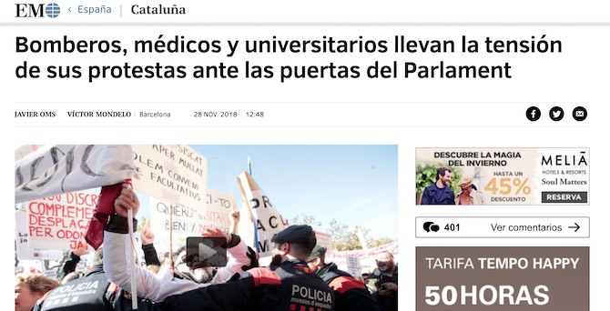Los bomberos llevan la ropa de casa, su equipo más que obsoleto es arcaico y sus familias están desprotegidas ante sus más que probables accidentes. Pero claro, pueden apagar fuegos y rescatar gatos de los árboles en catalán, ancestral y útil reivindicación, que no es poco. Los estudiantes ya no pueden soportar más recortes, el dinero se ha ido en manutención, mansiones y fanfarria nacionalista. Adiós a la pancatalanidad.