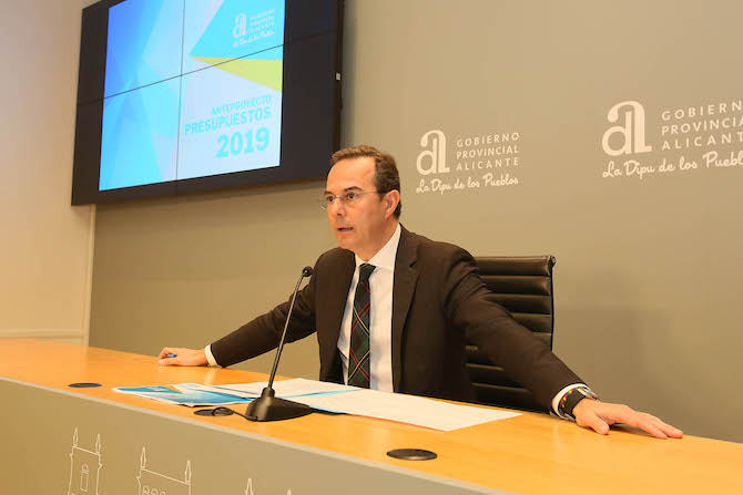 La asistencia y apoyo a los municipios, la inversión en materia de agua y la atención a las personas serán los principales ejes del presupuesto de la Diputación de Alicante para 2019, que se elevará a 214 millones de euros en el capítulo de gastos y a 224,4 millones en el de ingresos.