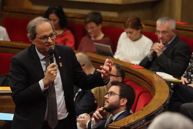 De momento, lo que ha visto todo el mundo es que Torra está desacreditando las instituciones catalanas y la Generalitat y provocando a la violencia, consiguiendo -por ejemplo- que Fredi Bentanachs, uno de los fundadores de Terra Lliure, pida un levantamiento social para proclamar una nueva Dui, animando a los de CDR y la CUP a que se sumen a esta inciiativa el próximo 21 de dciembre en Barcelona mientras el Gobierno de Pedro Sánchez realiza su Consejo de Ministros en la Ciudad Condal. Bentanachs invita a tomar a la fuerza el Parlament para hacer extesiva en el mismo esta declaración de independencia. Añadan a esto que los sindicatos de los mossos ya han manifestado que no pueden garantizar la seguridad en Cataluña ese día porque su inacción es política, no policial. Piden el auxilio de la Policía Nacional (PN) y de la Cuardia Civil (GC). En Cataluña hay 17.000 mossos d'escuadra y menos de 2.000 agentes entre PN y GC. ¿Es lógico y serio que los mossos d escuadra no puedan garantizar la seguridad invitando que hagan otros su función y, además, sin renunciar a su empleo o a su sueldo pero sí a su serviciio?