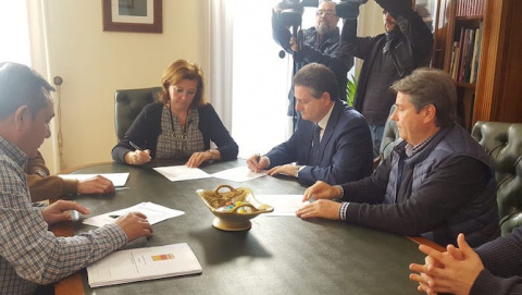 Concretamente, en Almoradí, donde el diputado ha rubricado el documento junto a la alcaldesa del municipio, María Gómez (imagen inferior) se renovará la red de saneamiento de las calles Las Viñas y La Cruz de la pedanía del Saladar.