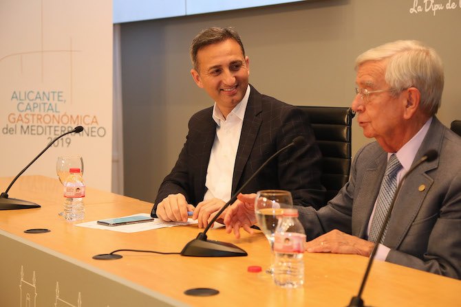 El presidente de la Diputación de Alicante, César Sánchez, y el de la Real Academia de Gastronomía, Rafael Ansón, han presentado hoy, en rueda de prensa, las actividades que se enmarcan dentro de la designación de Alicante como 'Capital Gastronómica del Mediterráneo 2019'.
