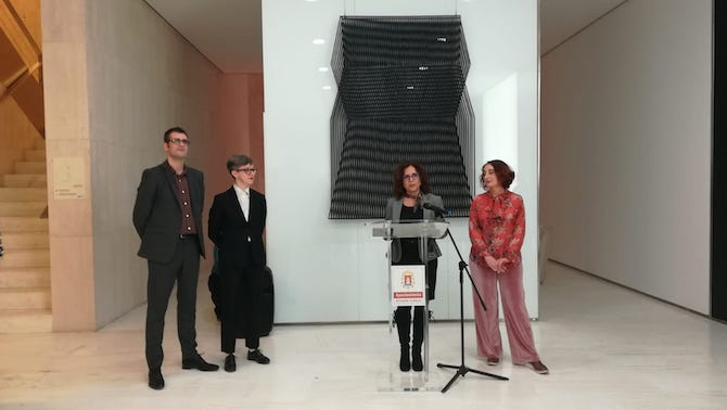La concejal de Cultura, Mª Dolores Padilla, ha inaugurado esta tarde la nueva exposición del MACA, junto a la conservadora del Museo, Rosa Castells, y los comisarios de la muestra, Marianna Gelussi y Jordi Ballart.