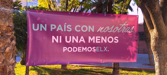 La formación política Podemos Elche pondrá su sede a disposición de todas las mujeres que lo necesiten durante la jornada de huelga del 8 de marzo como lugar de descanso y cuidado de niños y personas mayores, de quienes se encargarán un grupo de hombres del partido.