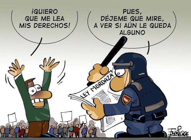 Siguiendo este hilo argumental, Sanchis asegura que "en una democracia nada es intocable, ni el Presidente del Gobierno, ni el Rey, ni el Papa, ni Dios, ni las banderas" y que "la Ley Orgánica de Seguridad Ciudadana o Ley Mordaza es una consecuencia de la incompetencia del gobernante que cuando no sabe cómo resolver un problema saca la porra". El límite podría estar en que la acción incite realmente a la violencia, puntualiza.