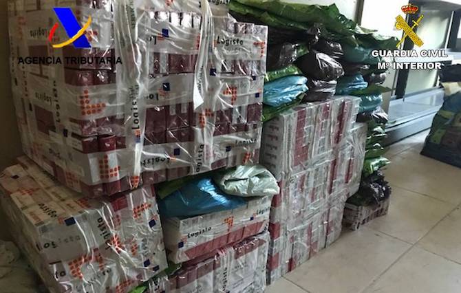 Como resultado, los agentes decomisaron, en colaboración con el Servicio Cinológico de la Comandancia de Alicante, 1.743 cajetillas de tabaco y 171 kilogramos de picadura de tabaco de diversas marcas comerciales, con un valor estimado de 17.600 euros.