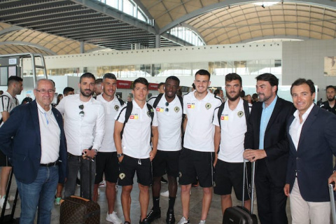 El alcalde de Alicante, Luis Barcala, en conversaciones con los futbolistas del Hércules, les ha dado ánimos para remontar la eliminatoria y les ha explicado lo que supondría el ascenso para una ciudad como Alicante.