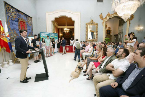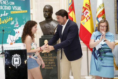 El alcalde de Alicante, Luis Barcala, ha ofrecido una recepción oficial a los 53 chicos participantes en el I Encuentro Internacional de Jóvenes Ciegos o con Discapacidad Visual que acoge el Centro de Recursos Educativos de la ONCE (CRE). La ciudad es estos días la capital de los estudiantes ciegos de Europa.
