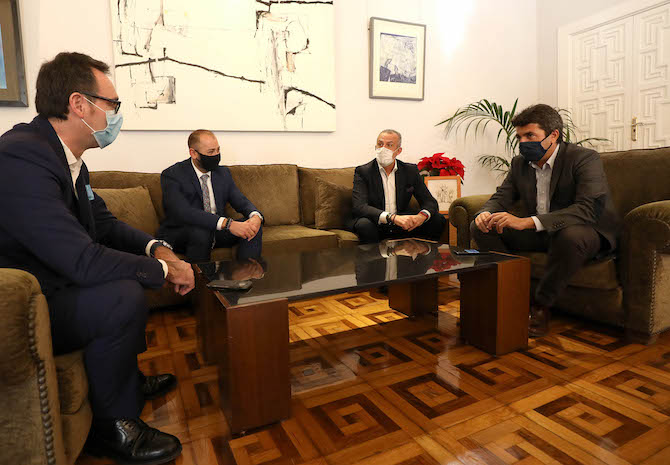 El presidente de la Diputación, Carlos Mazón, se ha reunido con el presidente de CEV Alicante (Confederación Empresarial de la Comunitat Valenciana), Perfecto Palacio, con el fin de trasladarle su propuesta de rebajar en 2021 el recargo provincial sobre el Impuesto de Actividades Económicas (IAE), una medida inédita en España que permitirá aliviar la carga impositiva de 9.000 empresas de la provincia.
