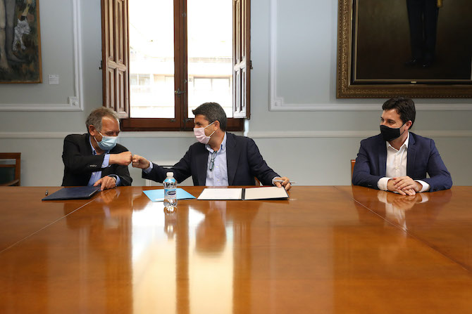 El presidente de la Diputación de Alicante, Carlos Mazón, y el secretario autonómico de Educación y Formación Profesional, Miquel Soler, han firmado esta mañana el protocolo de colaboración que regula este proyecto de sensibilización ambiental con el que se pretende favorecer la reducción, la reutilización y el reciclaje en las aulas, así como concienciar al profesorado y a los alumnos sobre la importancia de conservar y proteger el entorno.