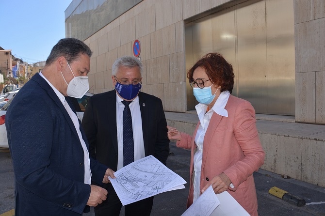 El concejal, el jefe del departamento técnico de Edificación y Arquitectura del Ayuntamiento, Gabriel Manzanaro, y la conservadora de la pinacoteca, Rosa Castells, han recorrido los alrededores del edificio, con los primeros bocetos y planos en las manos, para ir acotando posibilidades en sus planes para agrandar el inmueble.