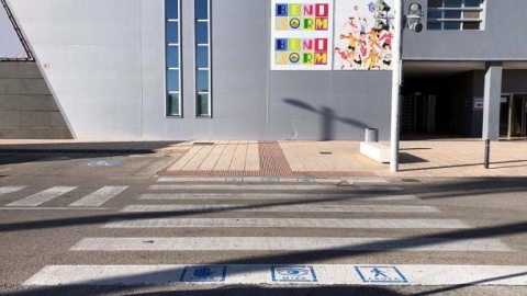 El Ayuntamiento de Benidorm ha iniciado la campaña de señalización en los entornos de los centros educativos y zonas deportivas con la finalidad de enseñar y concienciar a los más pequeños sobre cómo utilizar los pasos de peatones.