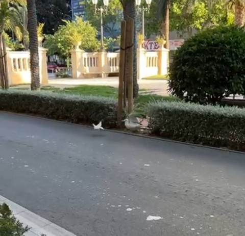 En las imágenes enviadas a la redacción de Alicante Press se observa cómo la paloma cruza la calzada a toda velocidad, perseguida muy de cerca por una gaviota de gran tamaño que claramente intenta atraparla. Justo en ese momento, un coche que circulaba por la vía alcanza de refilón a la gaviota, impidiendo el ataque final. El impacto es visible y contundente, aunque el ave depredadora logra remontar el vuelo y alejarse tambaleante, mientras la paloma continúa su huida.
