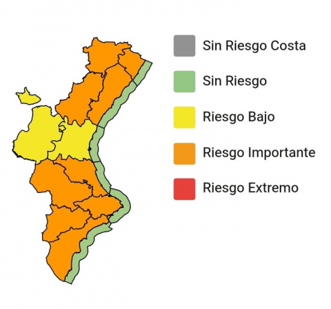 El aviso, que afecta también al interior sur y litoral sur de València, contempla posibles acumulaciones importantes de agua en cortos periodos de tiempo, así como tormentas localmente fuertes. En el caso de Castellón, la alerta naranja se ha establecido únicamente por lluvias, mientras que en otras zonas de València rige el nivel amarillo tanto por precipitaciones como por tormentas.