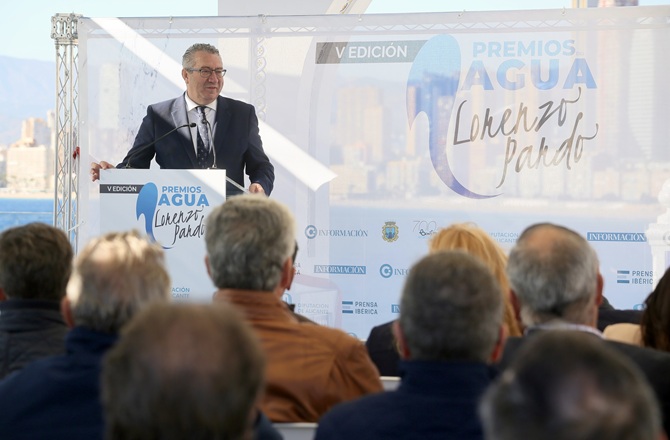 Benidorm ha acogido este jueves la entrega de la V edición de los Premios Agua Lorenzo Pardo, una iniciativa conjunta de la Diputación de Alicante y el diario Información que destaca la labor de quienes trabajan, desde el conocimiento técnico y la gestión responsable, en la protección de los recursos hídricos de la provincia.