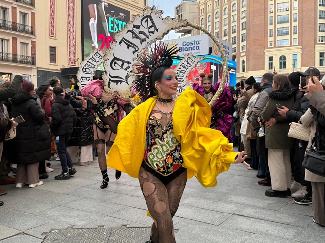 El Carnaval de Torrevieja ha llevado este sábado su colorido y su puesta en escena al corazón de Madrid, con un desfile promocional que ha recorrido algunas de las calles más transitadas de la capital para proyectar la fiesta torrevejense como uno de los grandes reclamos culturales y turísticos del municipio. La iniciativa se enmarca en la estrategia del Ayuntamiento de Torrevieja con motivo de FITUR, con el objetivo de reforzar la imagen de la ciudad como destino atractivo durante todo el año, más allá de la temporada estival.