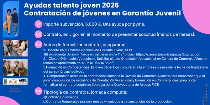 Ayudas Talento Joven 2026 en Alicante: contratos indefinidos y temporales con jornada completa