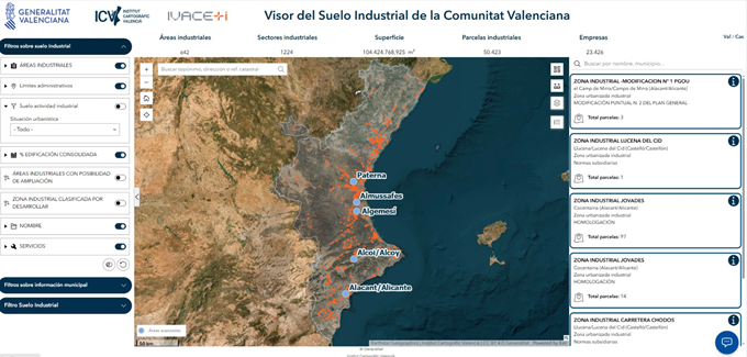 La nueva plataforma ha sido desarrollada conjuntamente por el Institut Cartogràfic Valencià y el Ivace+i, que han unido conocimiento, tecnología e información para poner en marcha un instrumento interactivo y más eficaz para impulsar la actividad empresarial. El visor estará disponible también en las páginas web de ambos organismos y permitirá consultar datos sobre parcelas, áreas industriales, infraestructuras, accesos, servicios asociados, clasificación urbanística y estado de desarrollo del suelo productivo.