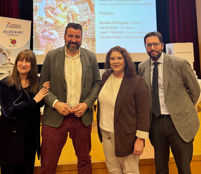 La acción se desarrolló en la presentación del destino ‘Comunitat Valenciana, tradición y modernidad’, celebrada ante cerca de un centenar de asistentes y organizada por el Instituto Cervantes en colaboración con Turespaña. En este encuentro, el director del organismo autónomo de la Diputación de Alicante, José Mancebo, puso el foco en la fuerza de las celebraciones alicantinas como herramienta de proyección exterior y como un producto turístico vinculado a experiencias auténticas.