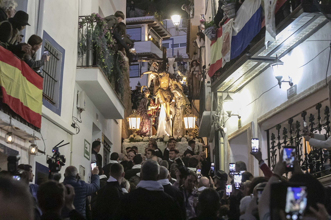 La otra gran protagonista de la jornada fue la Cofradía del Cristo del Divino Amor y Virgen de la Soledad Coronada ‘La Marinera’, que abrió las procesiones del día con las dos únicas incorporaciones de nuevos pasos en la Semana Santa de Alicante 2026.