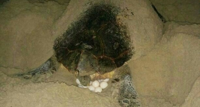 Una tortuga gigante pone 129 huevos en la arena de la playa de San Juan
